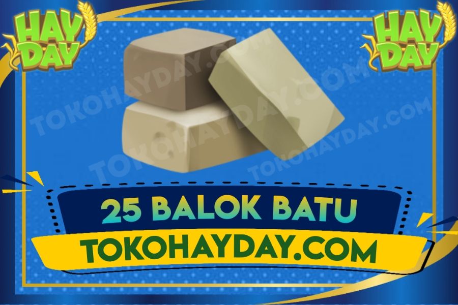 Sebelum membeli produk ini di Tokohayday.com, pastikan akun hay day Kakak sudah mencapai level 34 dan jangan lupa untuk menyiapkan free space (ruang kosong) di lumbung (Barn). Contohnya jika mau membeli 25 balok batu, maka harus kosongin lumbungnya minimal 25 supaya lumbungnya bisa muat 25 balok batu.