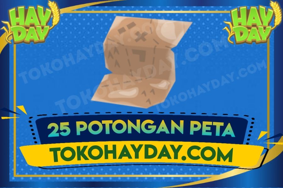Sebelum membeli produk ini di Tokohayday.com, pastikan akun hay day Kakak sudah mencapai level 34 dan jangan lupa untuk menyiapkan free space (ruang kosong) di lumbung (Barn). Contohnya jika mau membeli 25 potongan peta, maka harus kosongin lumbungnya minimal 25 supaya lumbungnya bisa muat 25 potongan peta.