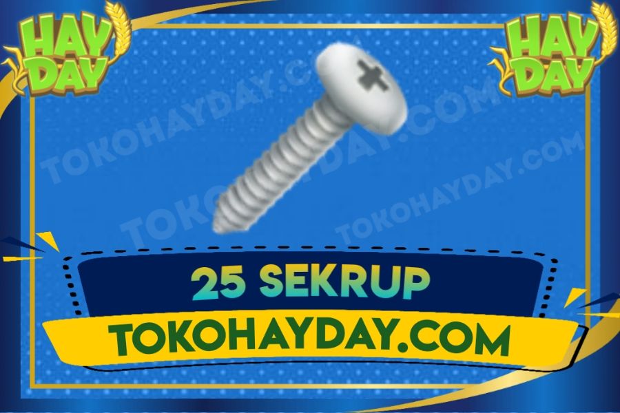 Sebelum membeli produk ini di Tokohayday.com, pastikan akun hay day Kakak sudah mencapai level 7 dan jangan lupa untuk menyiapkan free space (ruang kosong) di lumbung (Barn). Contohnya jika mau membeli 25 sekrup, maka harus kosongin lumbungnya minimal 25 supaya lumbungnya bisa muat 25 sekrup.