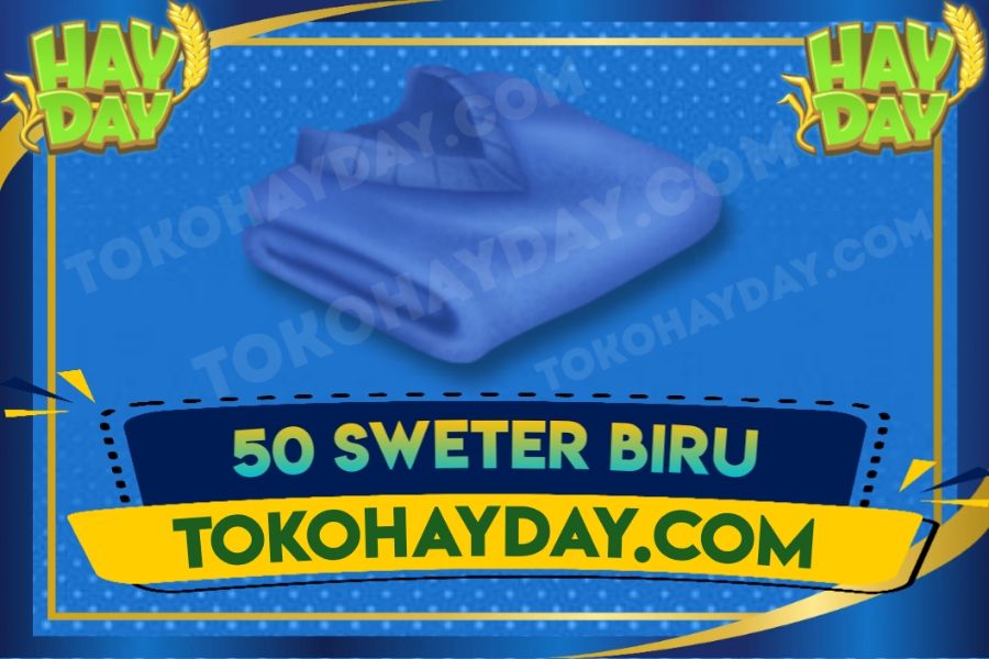 Verified by TOKOHAYDAY.COMDisini jual Sweter Biru (Blue Sweater), item ini merupakan salah satu barang hayday yang dibuat di Mesin Tenun (Loom) dan baru terbuka di level 20. Bahan yang dibutuhkan untuk membuat sweter biru diantaranya 2 indigo dan 2 wol. Jika membuat sendiri biasanya membutuhkan waktu sekitar 2 jam 33 menit - 3 jam per 1 pcs sweter biru. Tapi jika Kakak maunya yang praktis dan cepat, silahkan order saja di Tokohayday.com
